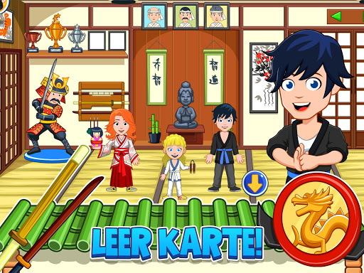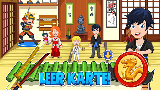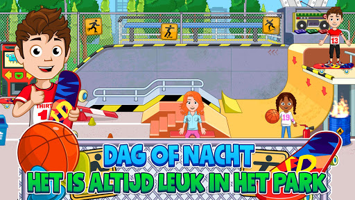 Na school is de beste tijd om alle dingen te doen die je leuk vindt. My City biedt je de juiste activiteiten en locaties om te onderzoeken en van te genieten. Vergeet niet de stadsbibliotheek, Het Skateboard Park, de Pizza Winkel en de Karateklas te bezoeken. Je kunt in het park relaxen, het huis van je karateleraar bezoeken en zelfs creatief worden met graffiti.