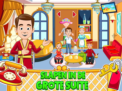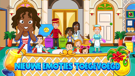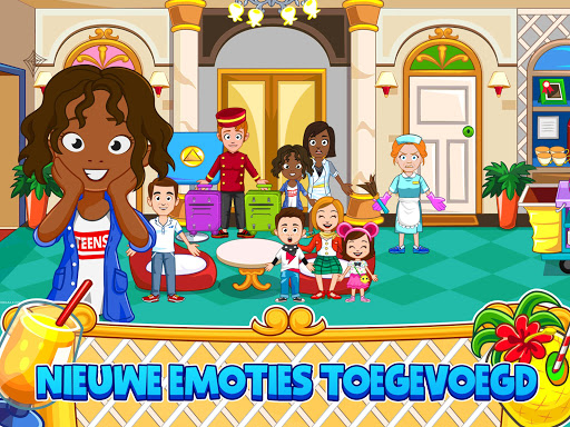 In My Town’s nieuwe Grand Hotel beleef je in ELKE kamer leuke en spannende avonturen! Laat de kruier de koffer van het pasgetrouwde stel dragen, zorg ervoor dat de kinderen lekker bij het zwembad en in de spelzaal van het hotel spelen! Met smakelijk fruitcocktails, een groot piratenschip en onze NIEUWE EMOTIES; My-Town’s nieuwe hotel is eindelijk open !
