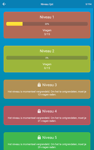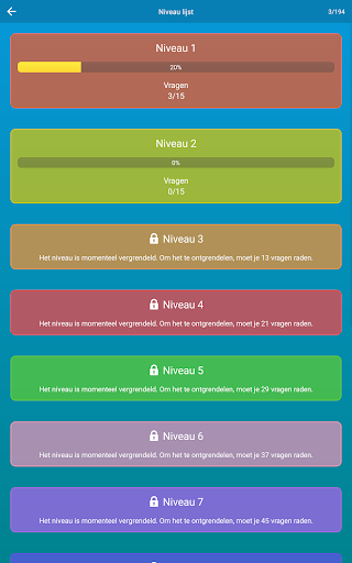 📍 Ga door de levels, beantwoord vragen en verdien munten! Je kunt ze uitgeven aan hints.