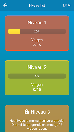 In totaal heeft de game 3 fascinerende modi met elk 13 niveaus. Dit zijn bijna 600 vragen!