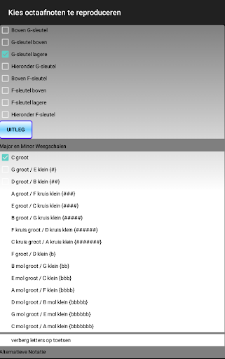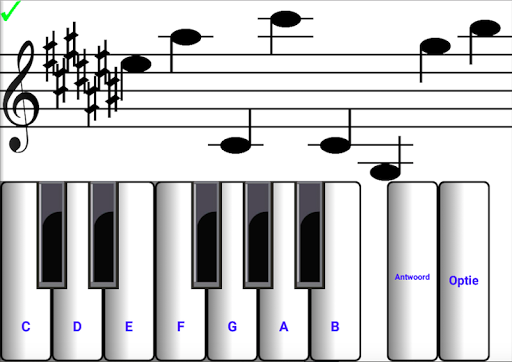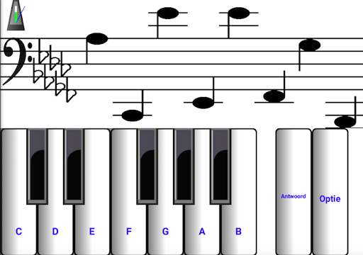 Leer om zicht muziek lezen in G-sleutel en F-sleutel. Span 6 octaven. Geldt voor elk instrument. Noten die worden gegenereerd willekeurig en niet beperkt tot een herhalende set. Schakelen tussen clefs voor nog meer plezier. Oplossing voor starters. Beginners het tempo door het beperken van het octaaf sectie om te leren. majeurladder en mineurladder (kruis en mol). Nederlands (Nederland) muzieknotaties zijn C D E F G A B. Nederlands (België) muzieknotaties zijn Do Re Mi Fa Sol La Si. Piano geluid kan worden gedempt. Onder testscore en prestaties statistieken. Zeer geschikt voor telefoons. Perfect voor tablets.