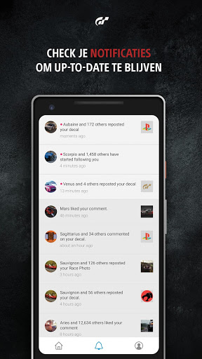 Miljoenen GT Sport-spelers nemen foto's van prachtige auto's en locaties, maken coole bestickeringen en delen intense racemomenten. Via je persoonlijke ACTIVITEITENFEED kun je ze allemaal bekijken, leuk vinden, reacties plaatsen en de beste delen. Deel een STATUSUPDATE om je vrienden en volgers te laten weten wat je aan het doen bent.