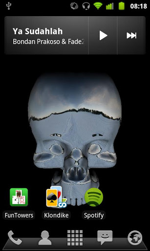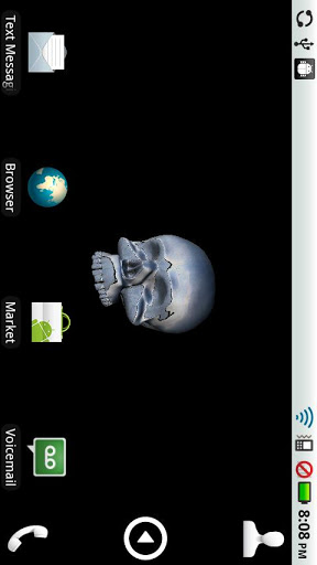 This live wallpaper uses your accelerometer to move a 3D skull on your wallpaperThis live wallpaper uses your accelerometer to move a real time 3D chrome skull. When your phone moves, the skull moves. It uses a low frame rate and OpenGL graphics to make it easy on your battery check out the full version for more skull types, horns, helmets and moving jaws https:market.android.comdetails?idcom.monyetmabuk.wallpapers.skull