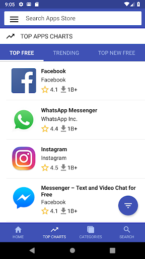 Discover the best apps for each category. Like top charts you can see top free paid trending grossing apps for that category. All categories like Shopping, News, Maps, Social, Entertainment, Finance, Health etc are included.