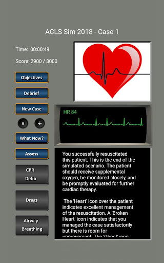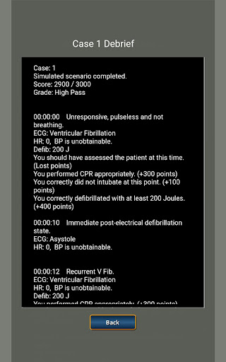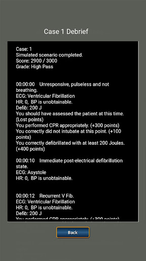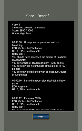 In addition to providing a graphical and dynamically changing simulation, the app provides a detailed record of your resuscitation, scores your performance, and provides detailed feedback on your management. Thus it is a complete learning environment.