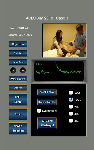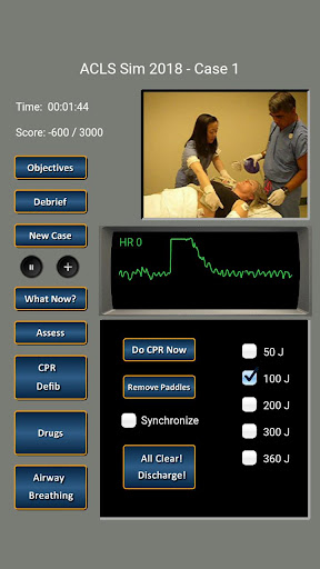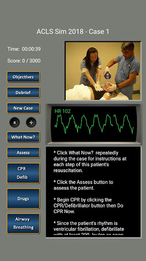 You must act quickly in these simulations or the patient's condition will deteriorate. Diagnose the ECG rhythm as the electrocardiogram waveform sweeps across the screen like on a real cardiac monitor. Assess and control the patient's airway and ventilation, administer CPR, defibrillation and medications to bring the patient back from cardiac arrest.
