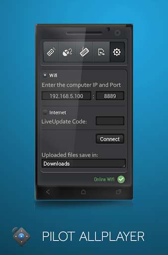 2. Bez dodatkowej aplikacji na komputerze, Pilot łączy się z ALLPlayerem minimum 5.8 poprzez sieć Wi-Fi.