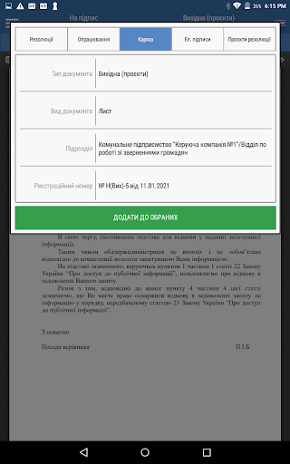 - додано можливість відправки документа на перевірку, підпис та розгляд;
