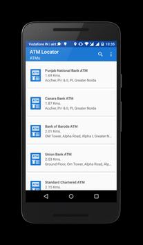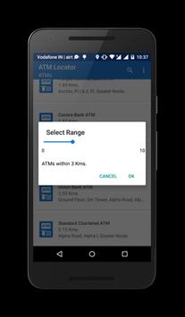 • Gives a list of ATMs in the range of 1 to 10 kms around you.