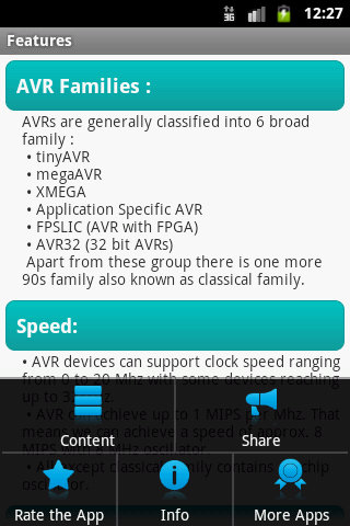 The app, AVR Control, is an introductory app for AVR series of micro-controller which discusses the functionality of the controller family theoretically and with the help of simple programs. I've chosen the program to be as simple as possible so that they are very easy to understand.