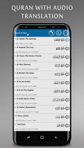 Al-Koran jest pełną i bezpłatną aplikacją Koran dla Androida. Istnieje wiele funkcji, kompletna Koran (114 Sura) z 27 tłumaczeń różnych języków i Audio (MP3) Recytacja wszystkich Sura Full Quran Kareem ze wszystkimi słynnymi recytatorami Ayah przez Ayah Auto Play Telawah Audio.