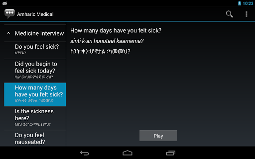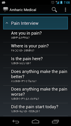 Amharskie frazy terminologiczne dla uczniów językowych. Z tekstem amharskim i audio Do konkursu CIO / G6 2010 CIO / G6 dla armii "i opiera się na modułach publicznie dostępnych online od US Institute Language Language. Chociaż przedmiot tej aplikacji dotyczy głównie tematów wojskowych, aplikacja jest szeroko przydatna z treścią dotyczącą szeregu tematów.