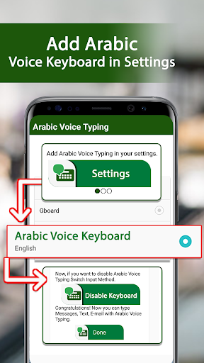 Aby użyć tej arabskiej klawiatury głosowej, musisz go zrobić Włącz najpierw. Otwórz aplikację, kliknij polecenie Włącz klawiaturę i wybierz klawiaturę Arabską Wpisywanie głosu, a następnie stuknij w Wybierz język i wybierz Arabski w celu wejścia i kliknij "Gotowe".