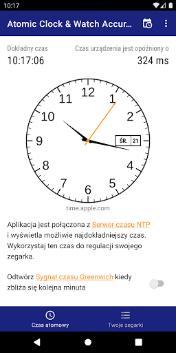 - Ta aplikacja może łączyć się z serwerami czasu NTP i wyświetlać dokładny czas.