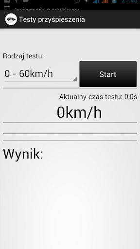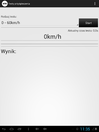 - Test przyśpieszenia samochodu ( tylko zakres 0-60km/h )