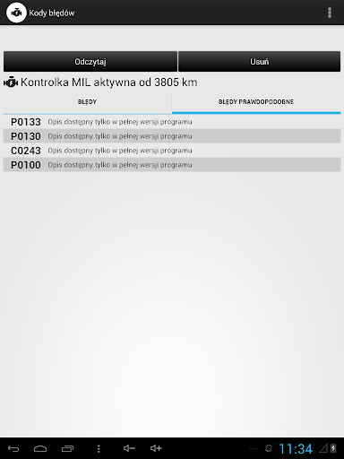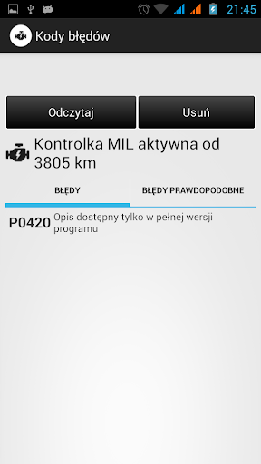 - Podgląd zapamiętanych kodów błędów