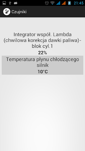- Aktualne wartości z dwóch czujników zainstalowanych w samochodzie