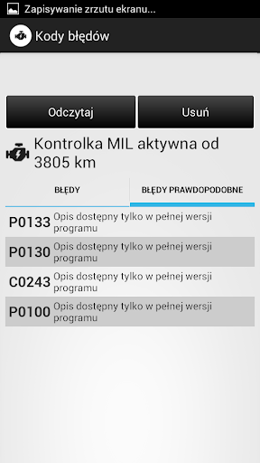 - Pełen opis błędu zapisanego w sterowniku ECU