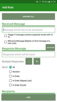 Are you sometimes not next to your phone, but want to reply to WhatsApp messages? AutoResponder for WhatsApp does this job for you. It will automatically respond to predefined messages, which contain some words or equal a message. You can set custom responses for different messages.