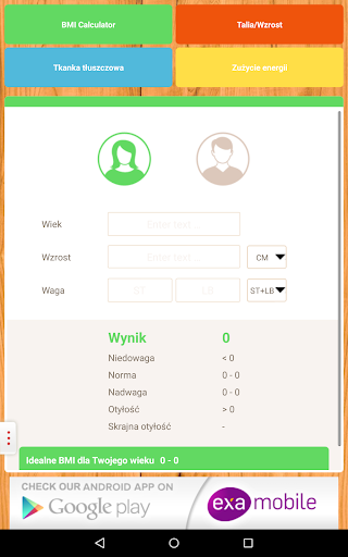 Ten kalkulator BMI jest idelany dla Ciebie - ładny, szybki, intuicyjny i prosty w obsłudze !!!