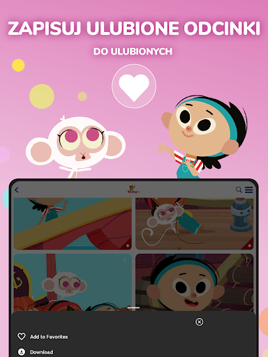 Bezpłatna aplikacja zawiera jedną bezpłatną kategorię, która obejmuje wybór naszych ulubionych piosenek i programów, z których możesz korzystać razem z dzieckiem.