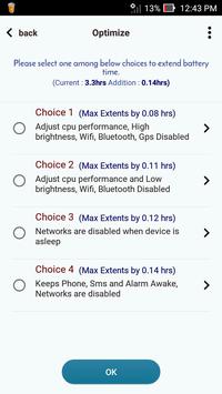 - The Manual battery optimizer lets you customize the battery saving settings. Now you can optimize battery based on your usage.