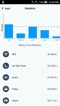 - The smart way of using battery by providing the time remaining (i.e Wifi, calls, Bluetooth ....) with intuitive graph.