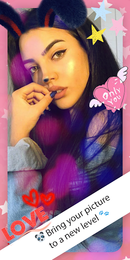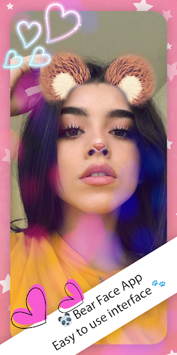 stickers , further with Bear face camera app, Additionally Cat face stickers ,Dog face stickers , Panda face stickers , Rabbit Face Stickers ,Heart crown & stylish Flower crown stickers , as well as with this photo editor you can implement plenty of motion stickers and lovely emojis & funny emoticons .