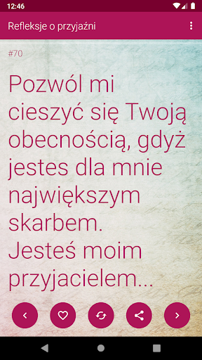 Prezentowany tu zbiór obejmuje refleksje i przemyślenia na temat przyjaźni jako pewnego ideału, na temat przyjaźni z drugim człowiekiem, jak również ogólnie na temat konkretnych przyjaciół, jakich mamy w swoim życiu oraz tego, co wnoszą w nasze życie. W zbiorze tym zatem są zawarte krótsze i dłuższe wiadomości tekstowe, które można wysłać do przyjaciela, aby podziękować mu za obecność i powiedzieć, jaką to ma dla nas wartość. Niektóre wiadomości są napisane prostymi słowami, gdyż ich autorami są prawdziwi ludzie, którzy w pewnym momencie swojego życia poczuli potrzebę, aby podzielić się uczuciami ze swoimi przyjaciółmi. Część z tych wiadomości wyraża także żal za utraconą przyjaźnią i przyjacielem.