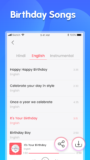piosenki urodzinowe to kolekcja 1000 różnych piosenek urodzinowych z językiem angielskiego i hindi.