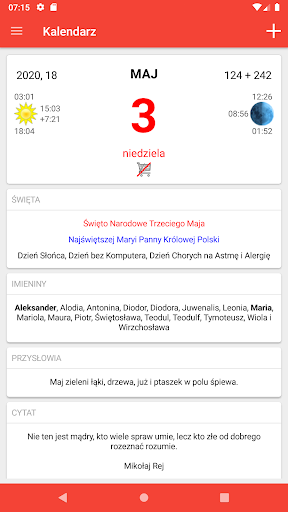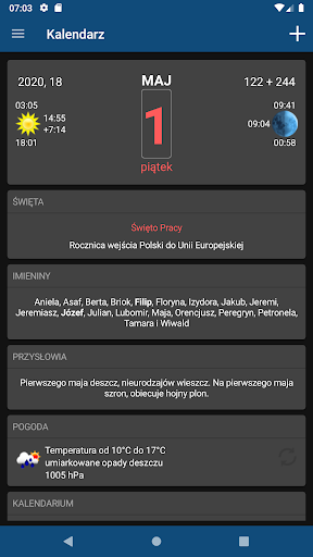 Polski kalendarz na system Android stworzony przez Polaków dla Polaków.
