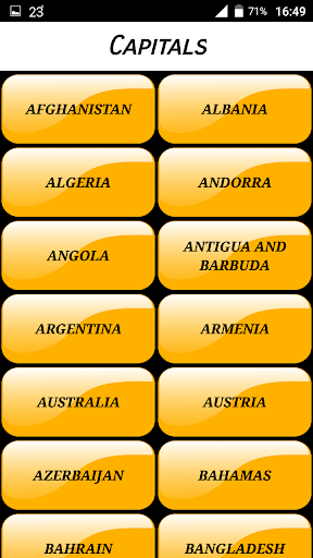 Prosta aplikacja do nauki stolic świata z ich flagami i ich kontynentami.Aplikacja jest na liście alfabetycznej, aby łatwiej znaleźć kraje.Jest tłumaczony na angielski, portugalski i hiszpański.