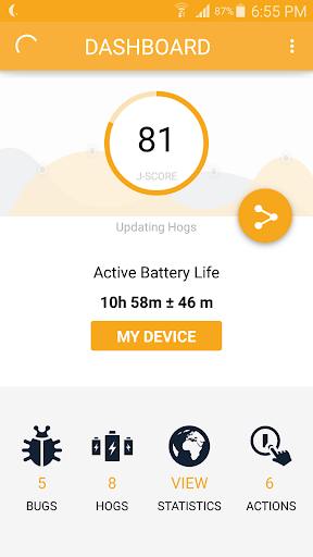 •  J-Score tells you how your battery efficiency compares to other users
