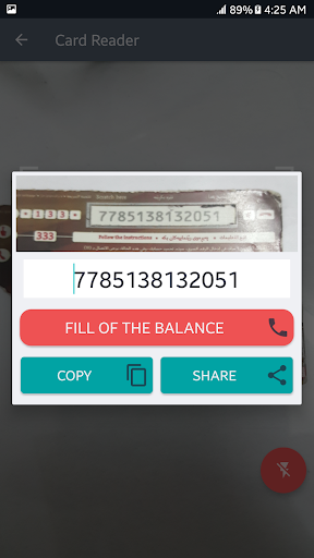 Ta aplikacja ułatwia proces wypełnienia salda dla kart przedpłaconych, odczytując numer karty przez telefon z kamerą, a następnie podając wynik użytkownikowiNastępnie może użyć tego numeru do wagi lub łatwo udostępniać numer.