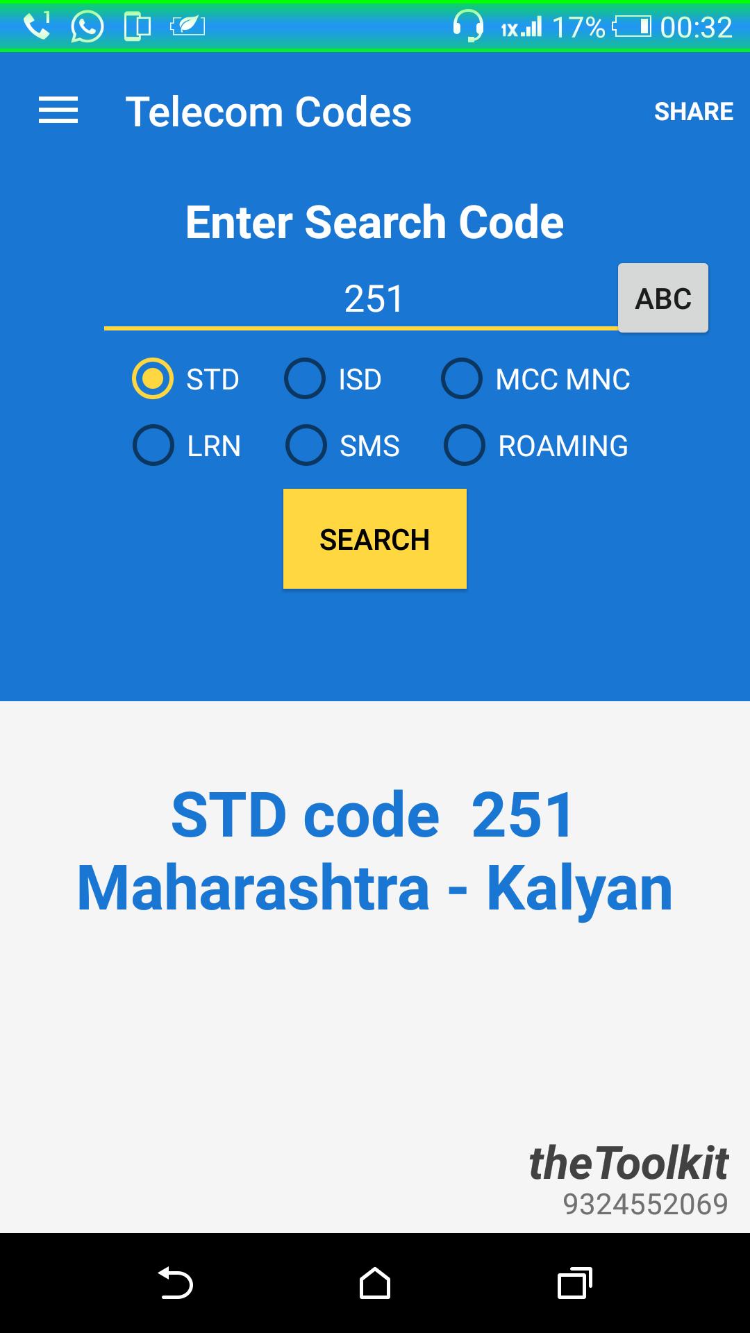 3. Telephone Code Search like STD | ISD | LRN | VLR | ROAMING CODES | SMS SENDER ID CODES.