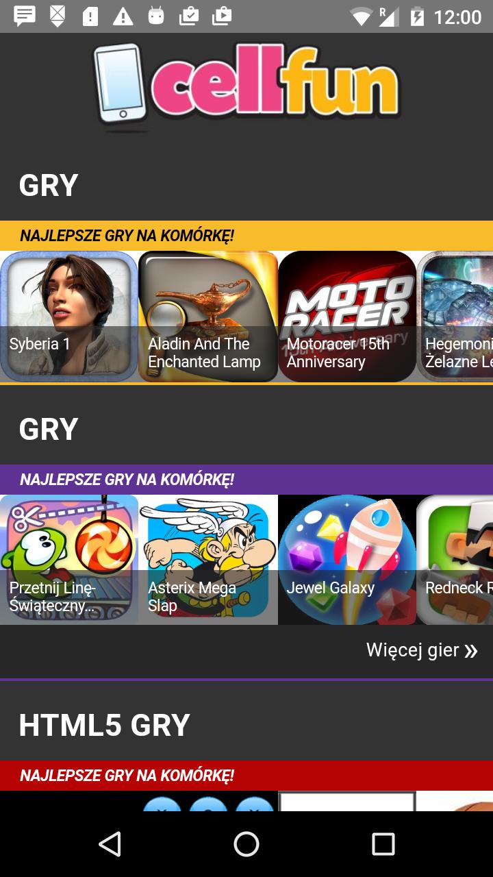 Czy chcesz grać teraz w ponad 100 najlepszych gier? Cellfun zapewnia nieograniczony dostęp do szeregu gier Premium na polskim rynku! Graj teraz w najlepsze gry na Android i HTML5 na swoim telefonie i pokaż swoim znajomym wyjątkową kolekcję gier! Ograniczona oferta wyjątkowej gry dla ponad 100 gier – zdobądź ją teraz!