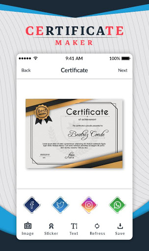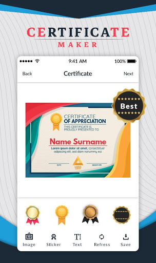 w domu, przy użyciu Aplikacja do certyfikatów i łatwy dostęp do projektowania certyfikatu i nagrody udzielania certyfikatów bawiących się ze znajomymi i rodziną.