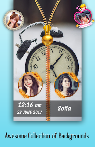 Best part of zipper lock screen is you can set couple photo on lock screen with awesome and creative objets. Even write your name on zipper lock screen. you can use it as couple zipper lock screen