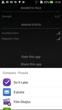 The performance of the compass application depends entirely on the characteristics of your device. The program will terminate the operation by warning you if any sensor of your device is found to be insufficient.
