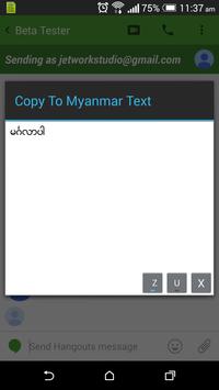 How often do you get messages written in Myanmar text and frustrated by not able to read in your android device? This application automatically display the text with Myanmar font in popup once you've copied some text in your device.