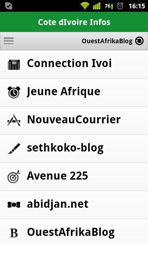 Pour tous savoir sur la Cote d'Ivoire à travers les sites et blogs les plus importants : Connection Ivoire Jeune Afrique Nouveau Courrier Sethkoko-blog Avenue 225 Abidjan.net Ouest Afrika Blog (RSS + Audio) RFI MondoBlog France24 Afrique AIP Afrik.com AllAfrica.com Ivoire Diaspora Il est possible de rajouter des sources d'information supplémentaires sur demande : jcohensalmon@gmail.com CIV, Afrique, cote d'ivoire, informations, Afrique de l'Ouest, Union africaine, dioula, baoulé, cote, ivoire