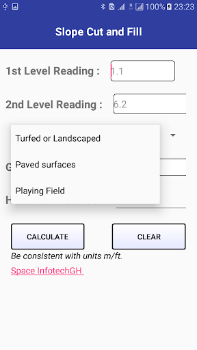 Cutandfill App pozwala użytkownikowi zastosować proste różnice wysokości odczytywanie od poziomowania staves (Neufert, 1980, strona 436).Aplikacja korzysta z nielicznych, ale zalecanych ocen krajowych.Jest to przyjazna dla użytkownika aplikacja, którą użytkownik, najprawdopodobniej geodeta lub inżynier zostanie przydatny podczas wykonywania ustawienia kołków do oceny większego obszaru.