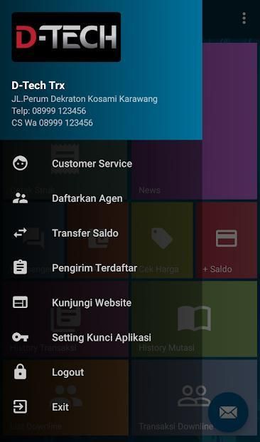Aplikasi android D-Tech Trx adalah aplikasi mobile gratis untuk member-member setia D-Tech Trx di mana pun berada. Aplikasi ini memudahkan Anda dalam melakukan berbagai transaksi seperti pengisian pulsa, pembelian token listrik, pembayaran tagihan pasca bayar, pembelian voucher game, dll.