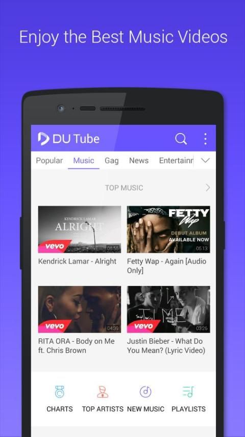 – Our newly designed Music Channel will recommend you the latest and hottest music videos. This amazing music channel let you: watch the hottest MV of world at the very first time; follow the most trending artist like Justin Bieber, Adele, Drake, Chris Stapleton, Taylor Swift, Bruno Mars, Maroon 5 and many more; listen latest music and hot songs of the whole web; makes you never miss the top charts; watch the top track across every country by a single click. You, music lover, just enjoy it with DU Tube and you will not be disappoint!