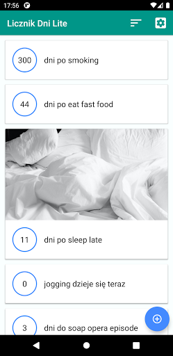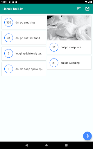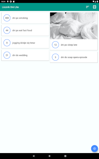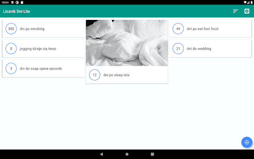 * Oprogramowanie - aplikacja Licznik Dni Lite zainstalowana na urządzeniu z systemem Androidem.