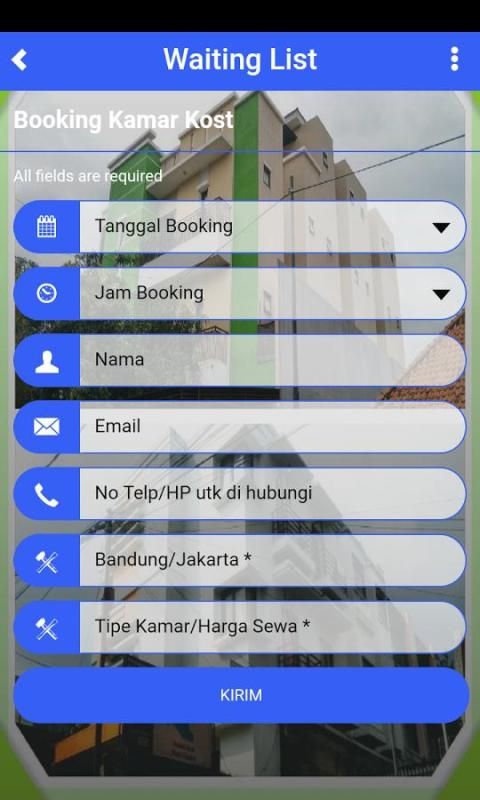 7. Booking, you can make a reservation Room Kost, by selecting the period length of stay (Monthly, Yearly) and input the data themselves subscribers.