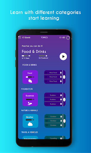 10 minutes of fast, racy and epic learning per day 2 hours weekly and 10 hours monthly, over 2000+ words in 100+ topics. More devoted language learners can have a feature for faster progress and, of course, unlimited learning time.