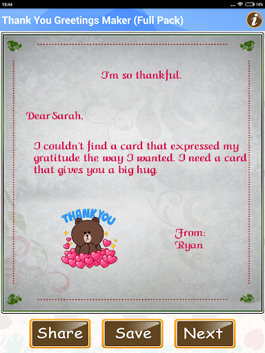 Pełna aplikacja do dziękuję pozdrowienia Umożliwia tworzenie spersonalizowanych kart z życzeniami dla swoich przyjaciół członków rodziny i bliskich, aby podzielić się swoimi uczuciami, jak bardzo jesteś wdzięczny. Ta darmowa aplikacja na Androida zapewnia obiekt do zaprojektowania atrakcyjnych kart z życzeniami z zaprojektowanymi szablonami dostępnymi w aplikacji. Ta aplikacja ma naprawdę dużą kolekcję Dziękujemy, życzenia wiadomości i cytuje obrazy dla wszystkich relacji, w tym: