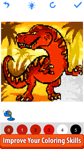 -Pixelize and Fun Farbe według liczb Wszystkie zdjęcia dinozaurów.