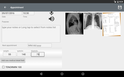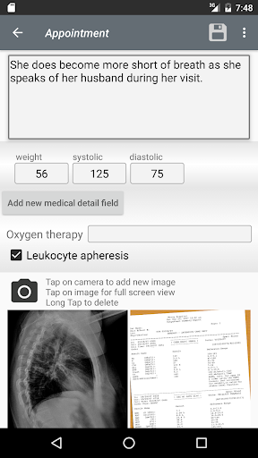 Take photos or load from gallery images fro medical related material (examination results, x-rays, U/S etc.).